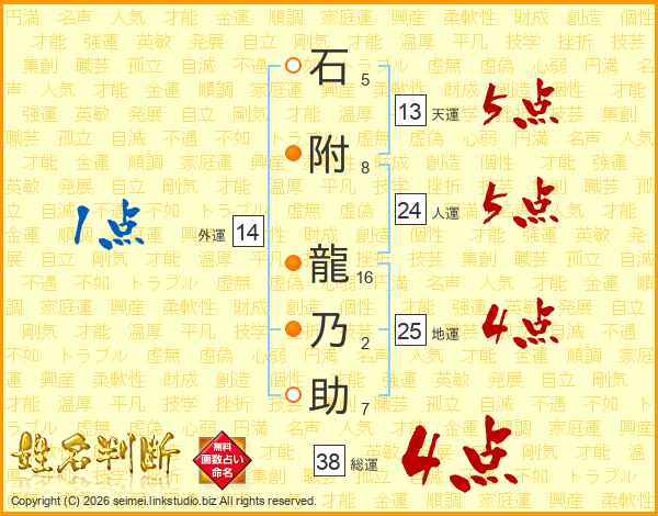 石附龍乃助さんの総運は38画の4点!