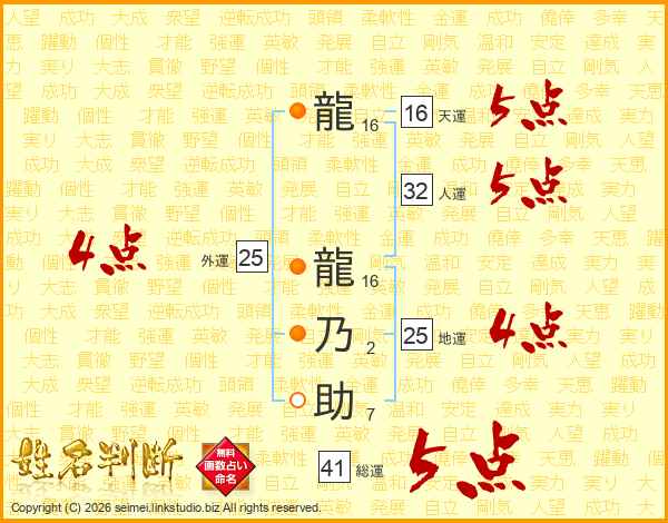 龍(16画) 龍(16画)乃(2画)助(7画)