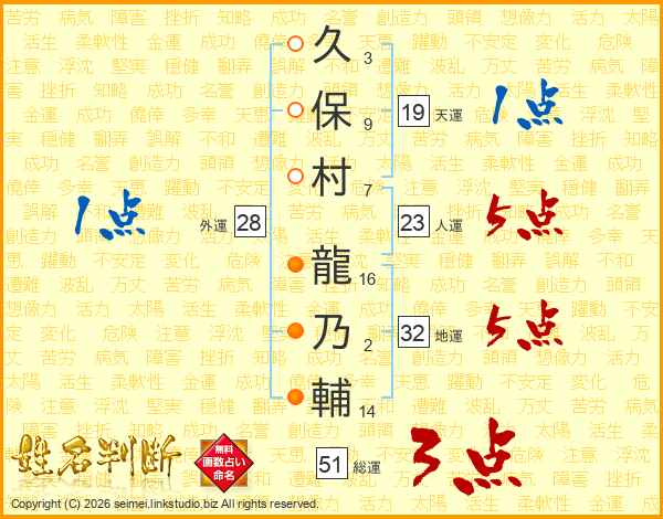 久保村龍乃輔さんの人運は23画の5点!