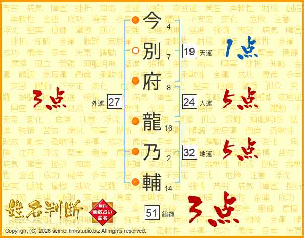 今別府龍乃輔さんの総運は51画の3点!