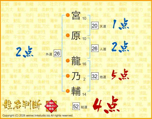 宮原龍乃輔さんの総運は52画の4点!