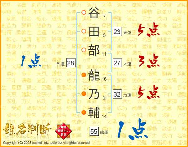 谷田部龍乃輔さんの総運は55画の1点!