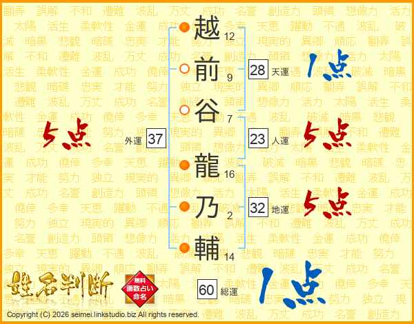 越前谷龍乃輔さんの外運は37画の5点!