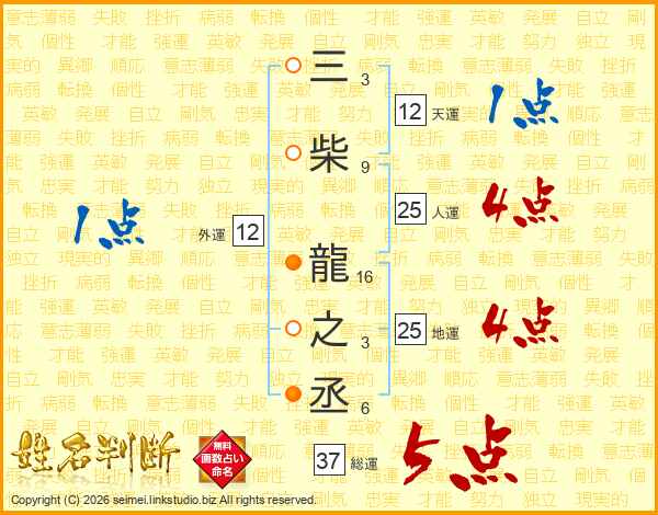 三柴龍之丞さんの総運は37画の5点!