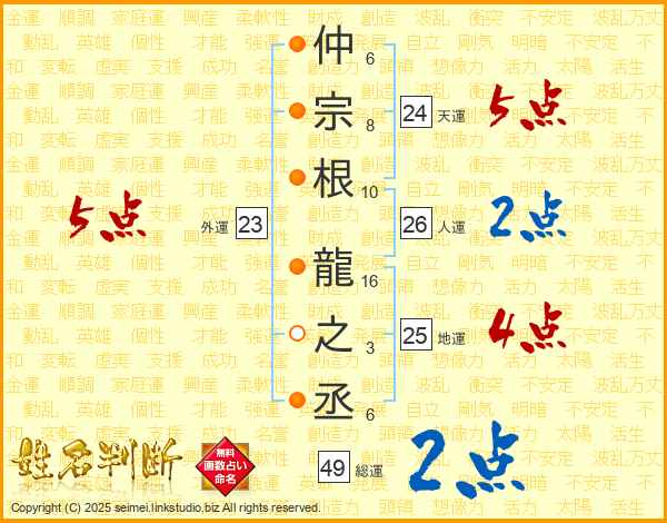 仲宗根龍之丞さんの総運は49画の2点!