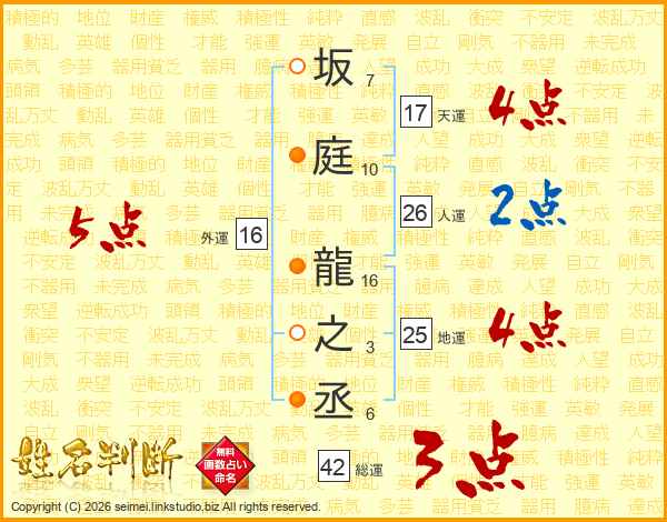 坂庭龍之丞さんの総運は42画の3点!