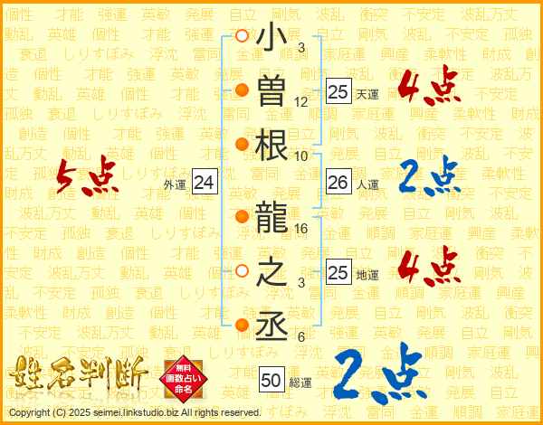 小曽根龍之丞さんの天運は25画の4点!