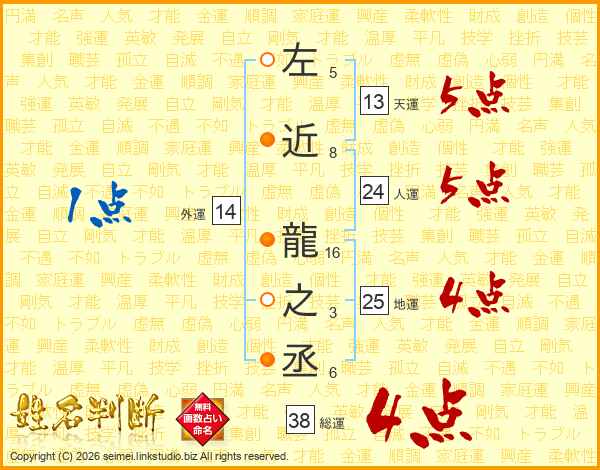 左(5画)近(8画) 龍(16画)之(3画)丞(6画)