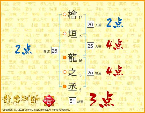 檜垣龍之丞さんの天運は26画の2点!