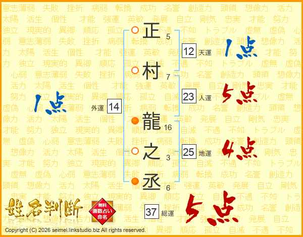 正村龍之丞さんの総運は37画の5点!