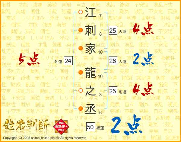 江(7画)刺(8画)家(10画) 龍(16画)之(3画)丞(6画)