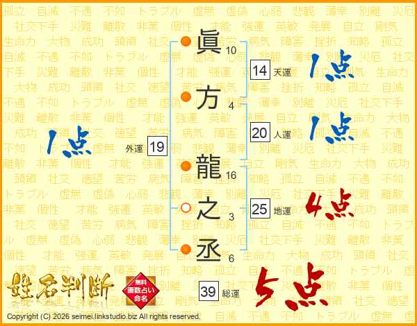 眞(10画)方(4画) 龍(16画)之(3画)丞(6画)