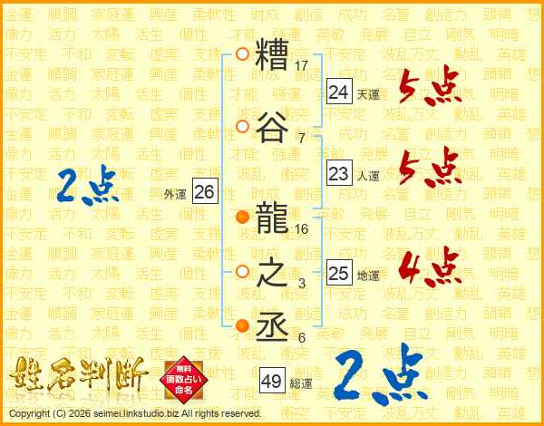 糟(17画)谷(7画) 龍(16画)之(3画)丞(6画)