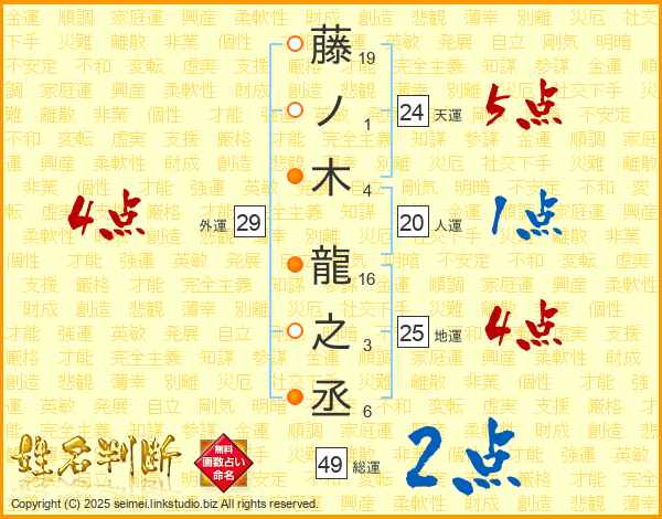 藤(19画)ノ(1画)木(4画) 龍(16画)之(3画)丞(6画)