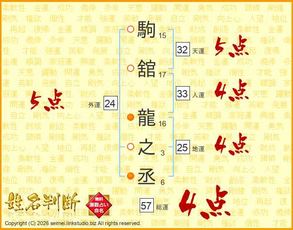 駒舘龍之丞さんの総運は57画の4点!