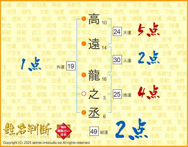 高(10画)遠(14画) 龍(16画)之(3画)丞(6画)