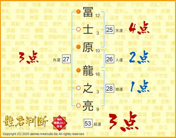 冨士原龍之亮さんの天運は25画の4点!