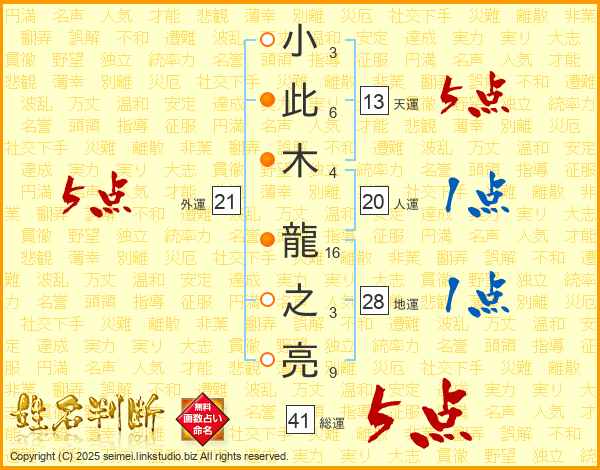 小此木龍之亮さんの総運は41画の5点!