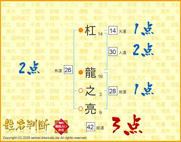 杠(14画) 龍(16画)之(3画)亮(9画)