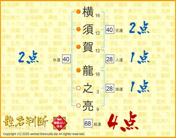 横須賀龍之亮さんの天運は40画の2点!