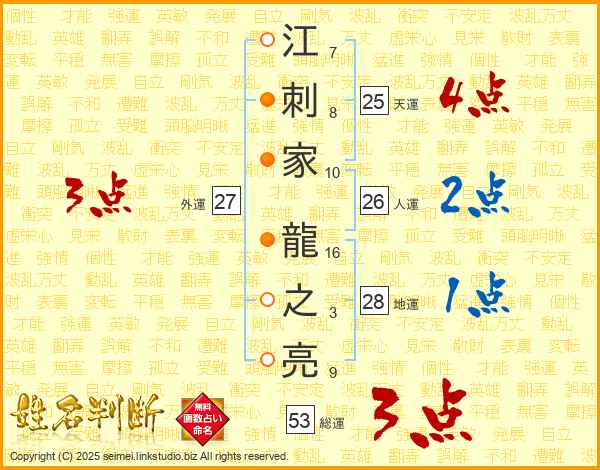 江刺家龍之亮さんの天運は25画の4点!