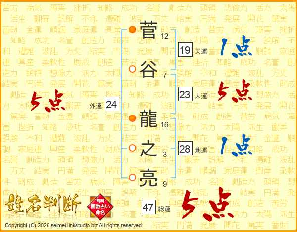 菅谷龍之亮さんの総運は47画の5点!