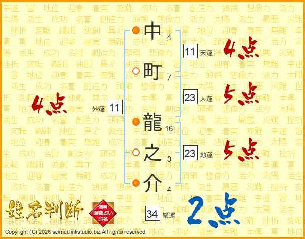 中町龍之介さんの天運は11画の4点!
