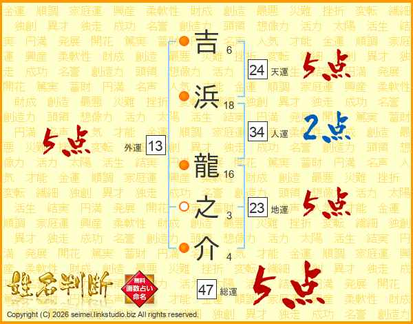 吉浜龍之介さんの総運は47画の5点!