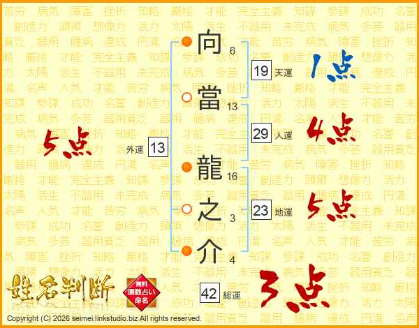 向當龍之介さんの人運は29画の4点!