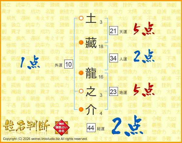 土藏龍之介さんの総運は44画の2点!