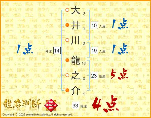 大(3画)井(4画)川(3画) 龍(16画)之(3画)介(4画)