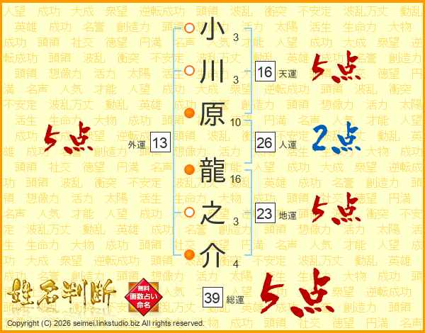 小川原龍之介さんの総運は39画の5点!