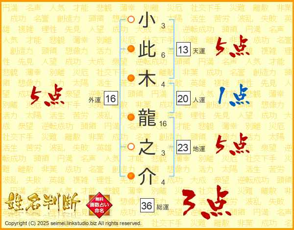 小(3画)此(6画)木(4画) 龍(16画)之(3画)介(4画)