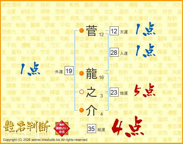 菅龍之介さんの総運は35画の4点!