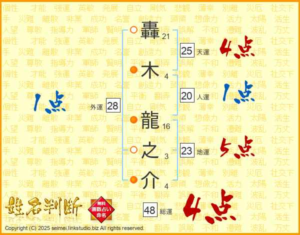 轟木龍之介さんの天運は25画の4点!