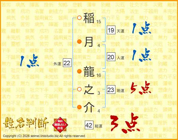 稲(15画)月(4画) 龍(16画)之(3画)介(4画)