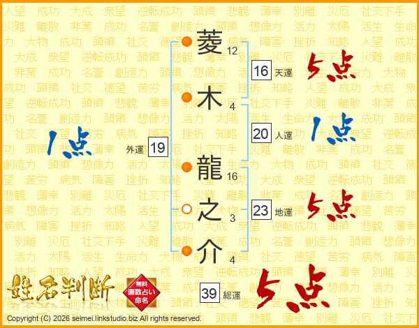 菱(12画)木(4画) 龍(16画)之(3画)介(4画)