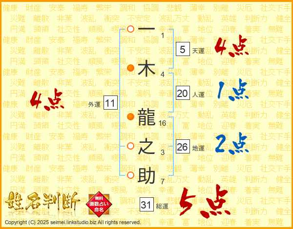 一(1画)木(4画) 龍(16画)之(3画)助(7画)