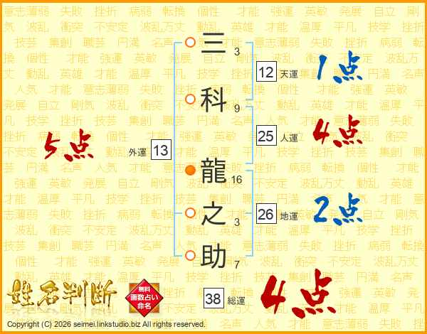 三科龍之助さんの総運は38画の4点!