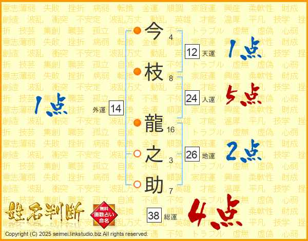 今枝龍之助さんの総運は38画の4点!