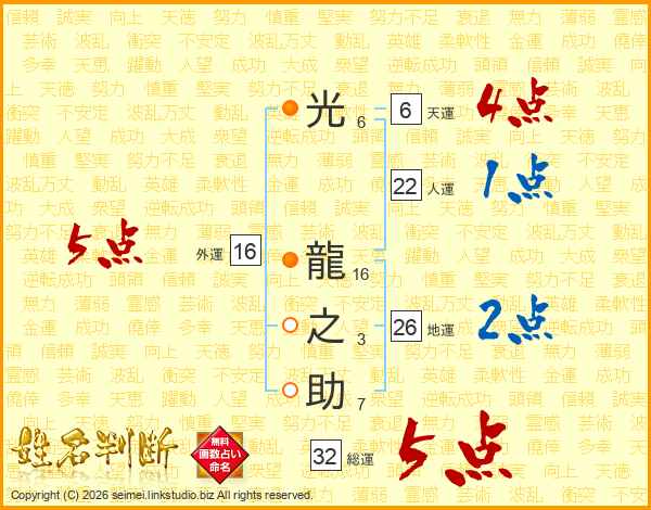 光龍之助さんの総運は32画の5点!