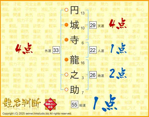 円城寺龍之助さんの外運は33画の4点!