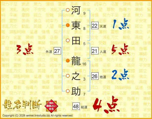 河東田龍之助さんの総運は48画の4点!