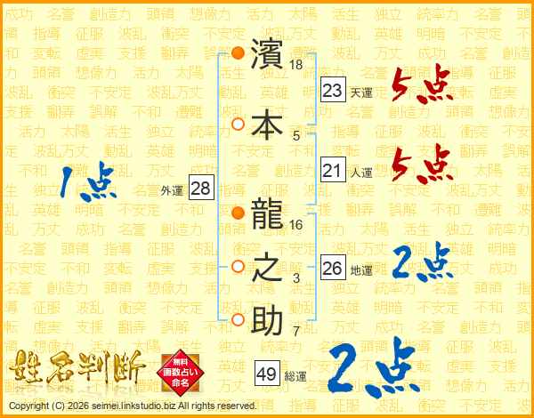 濱(18画)本(5画) 龍(16画)之(3画)助(7画)