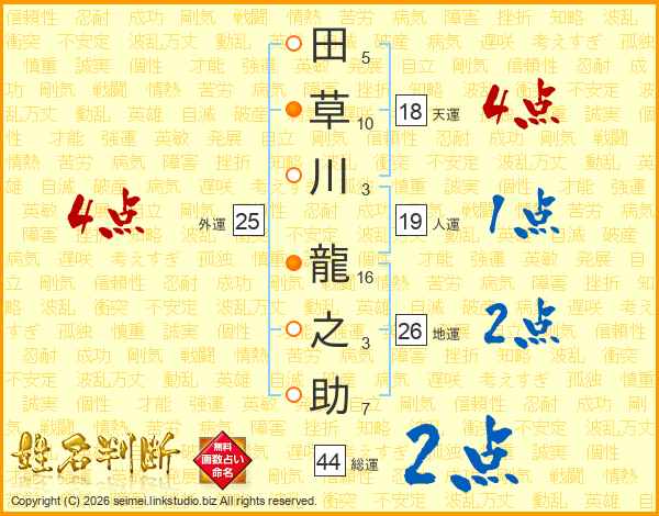 田草川龍之助さんの総運は44画の2点!
