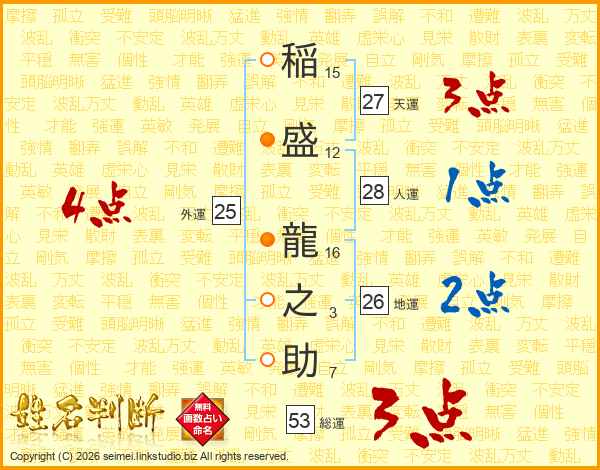 稲盛龍之助さんの外運は25画の4点!