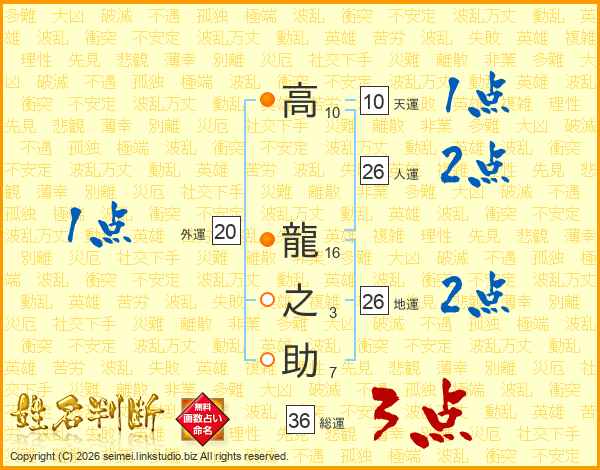 高龍之助さんの総運は36画の3点!