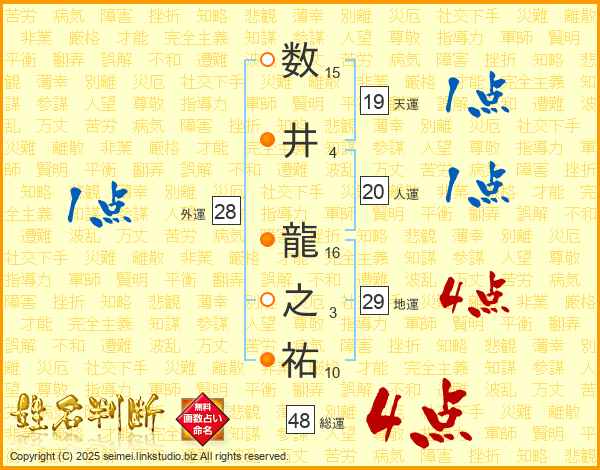 数井龍之祐さんの総運は48画の4点!
