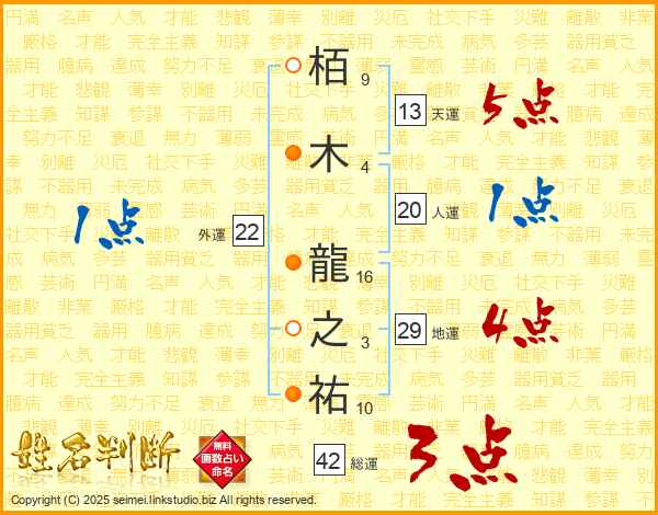 栢木龍之祐さんの地運は29画の4点!