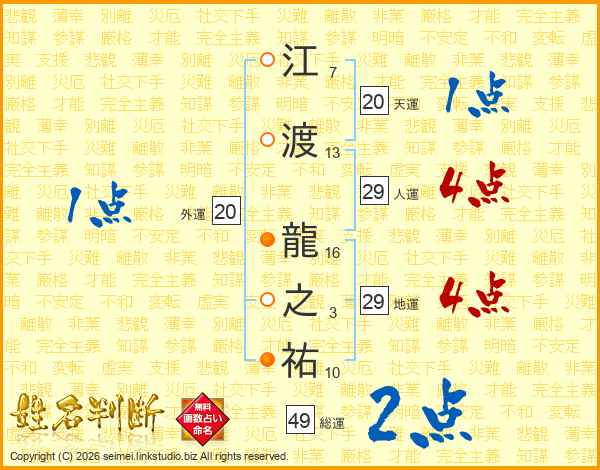 江渡龍之祐さんの総運は49画の2点!